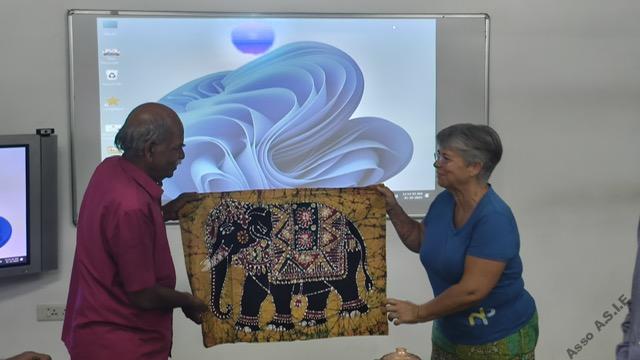 Toute la soirée s’est déroulée dans le calme, l’écoute, la simplicité et l’émotion lorsque Murugashankari a évoqué ce jour symbolique pour elle puisque date anniversaire du décès de son père. Les larmes qui coulaient sur son joli visage portaient cette dimension du partage simple et profond de ce que nous sommes tous, emprunt de tristesse lorsque nous évoquons des souvenirs douloureux ou le manque d’un être cher mais que nous n’osons pas montrer par pudeur, dit-on! C’est surtout parce que l’on craint le jugement, le désintérêt de l’autre et que nos vies sont morcelées en être public, privé, professionnel, etc. L’unité de l’être est une réalité que nous apprécions ici et qui pourtant n’est pas un étalage de toutes les misères connues par les enfants dans leur famille. C’est plus subtil et il faut venir ici de nombreuses fois pour tenter d’en comprendre le sens et pour s’approprier cette manière d’être…