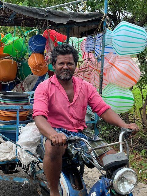 Lorsque les enfants étaient à l’école, j’ai eu la chance de découvrir différents villages avec M. Bharathi ou Ms. Anbu : temples, rivières, culture des fruits, des fleurs. J’ai notamment appris à confectionner des guirlandes de jasmin.