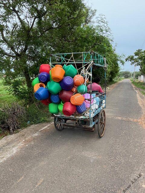 Pour rejoindre Nilakottai au Tamil Nadu en Inde du sud il nous a fallu 37h de minibus, d’avion, d’escale dans le magnifique et surprenant aéroport serre tropicale de Doha aux Émirats. Puis, à nouveau un minibus sur les routes indiennes, véritables scènes de cinéma de science-fiction pour nous les européens !