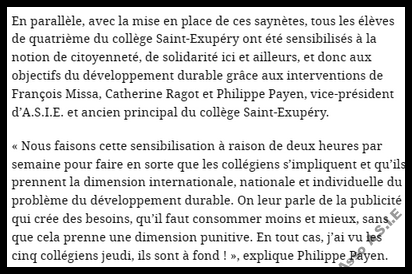 Depuis début septembre 2024, les 150 élèves de 4ème du Collège Saint-Exupéry reçoivent une sensibilisation de 2h00 par classe sur l’Éducation à la Citoyenneté et à la Solidarité « ici et ailleurs » (ECSI) et aux Objectifs du Développement Durable (ODD).